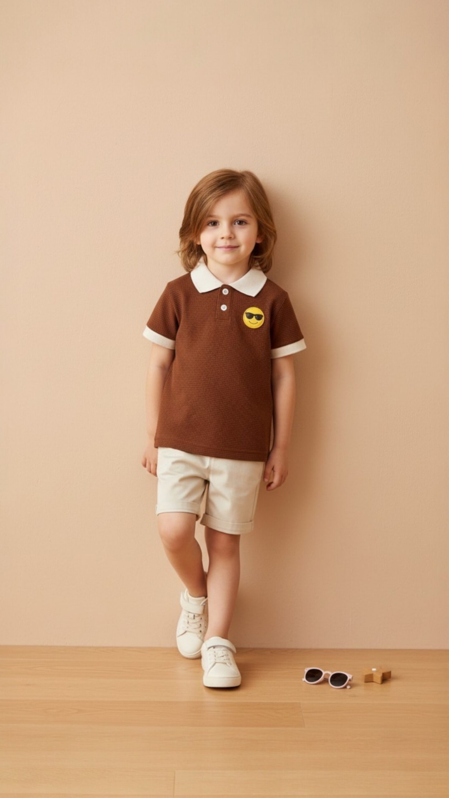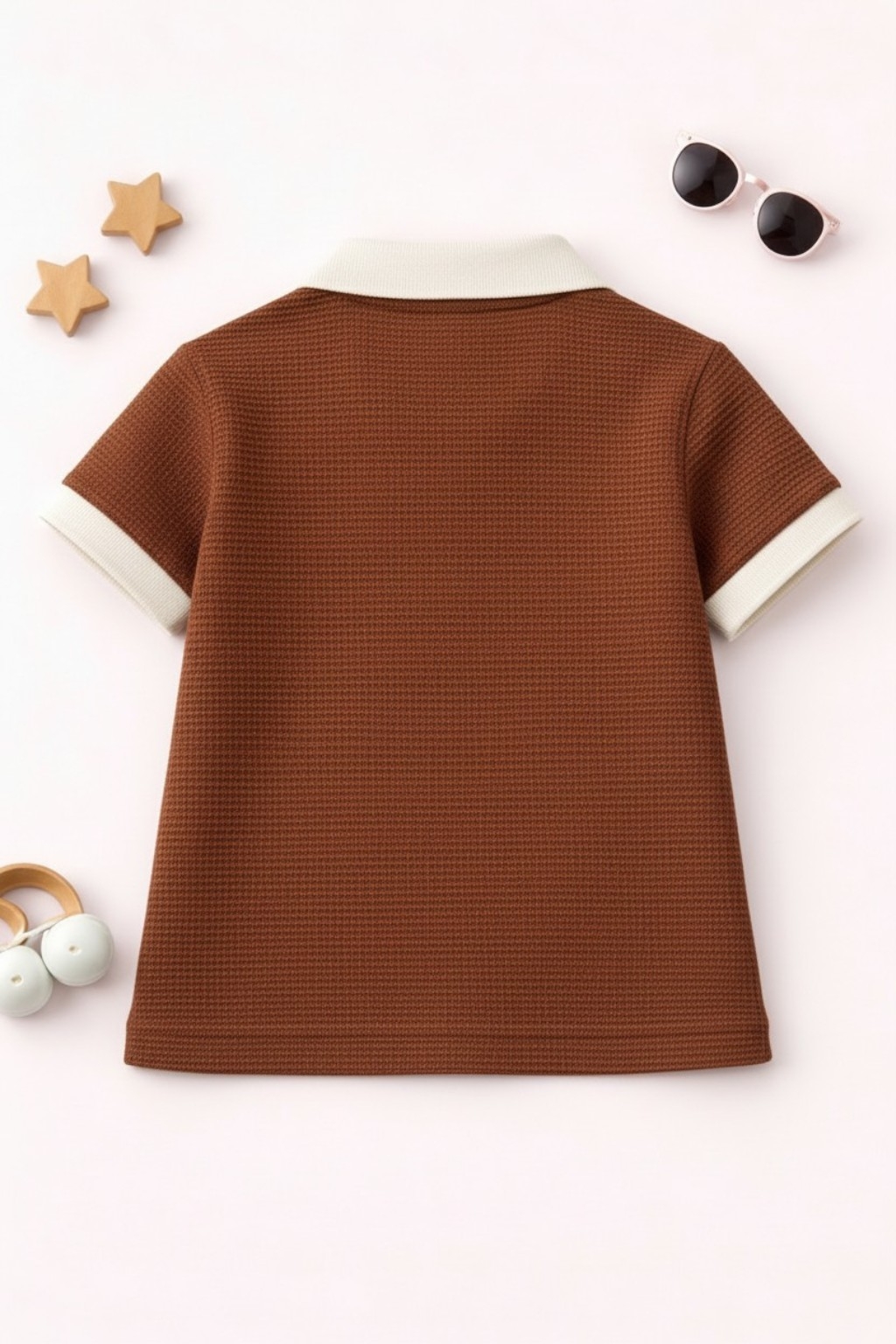 The waffle texture not only enhances the overall look but also improves airflow, making it a great choice for warm weather. The polo collar adds a smart and trendy vibe, making your child stand out effortlessly.