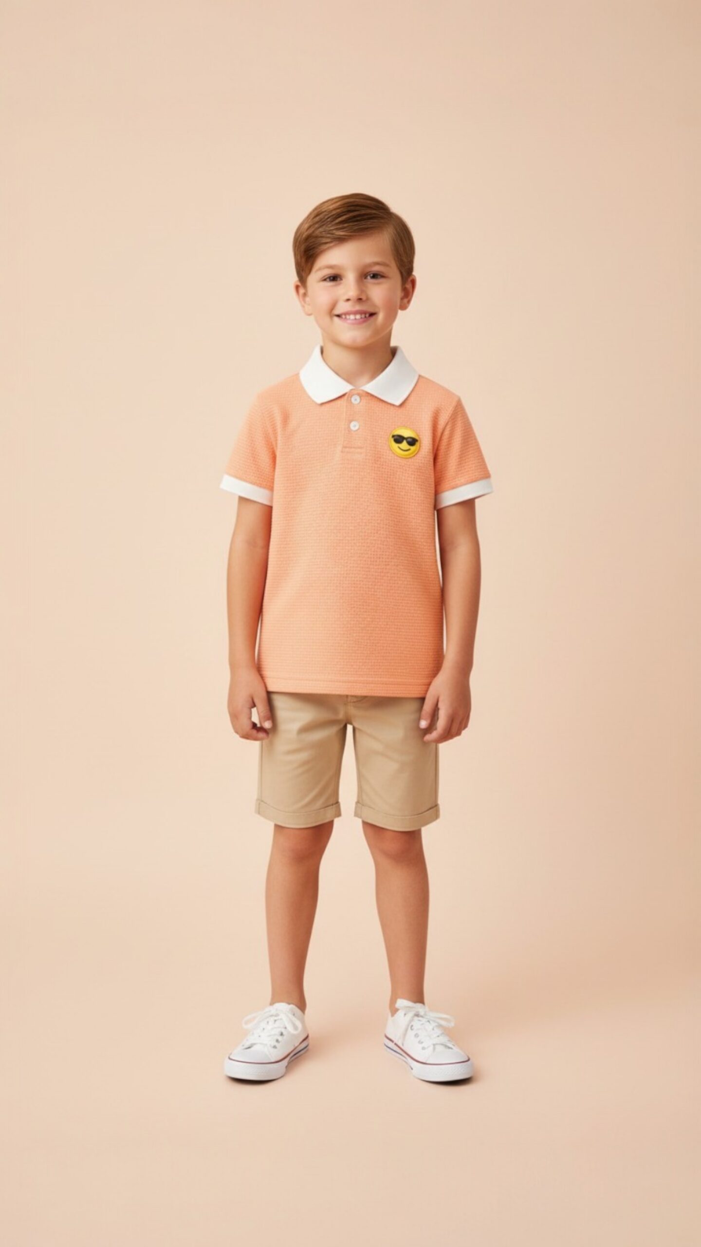 Kids Polo Tees – Peach & White