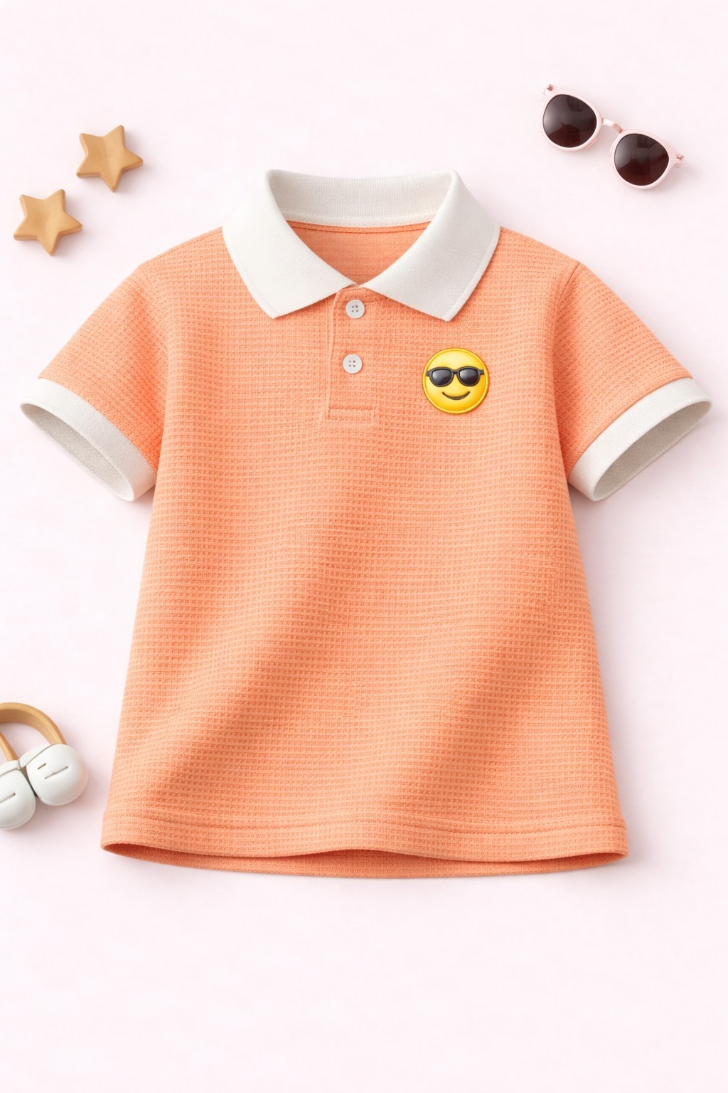 The waffle texture not only enhances the overall look but also improves airflow, making it a great choice for warm weather. The polo collar adds a smart and trendy vibe, making your child stand out effortlessly.