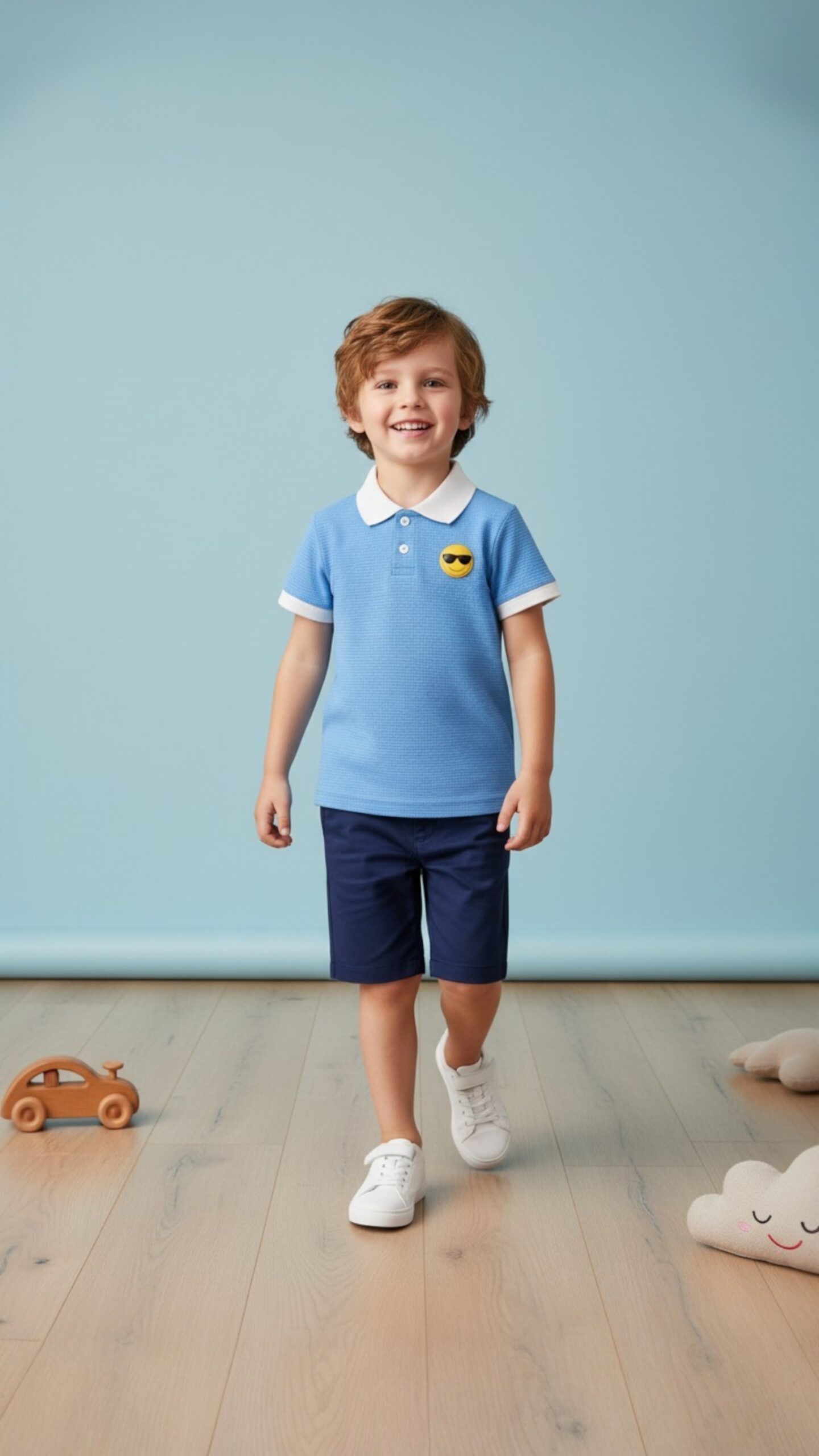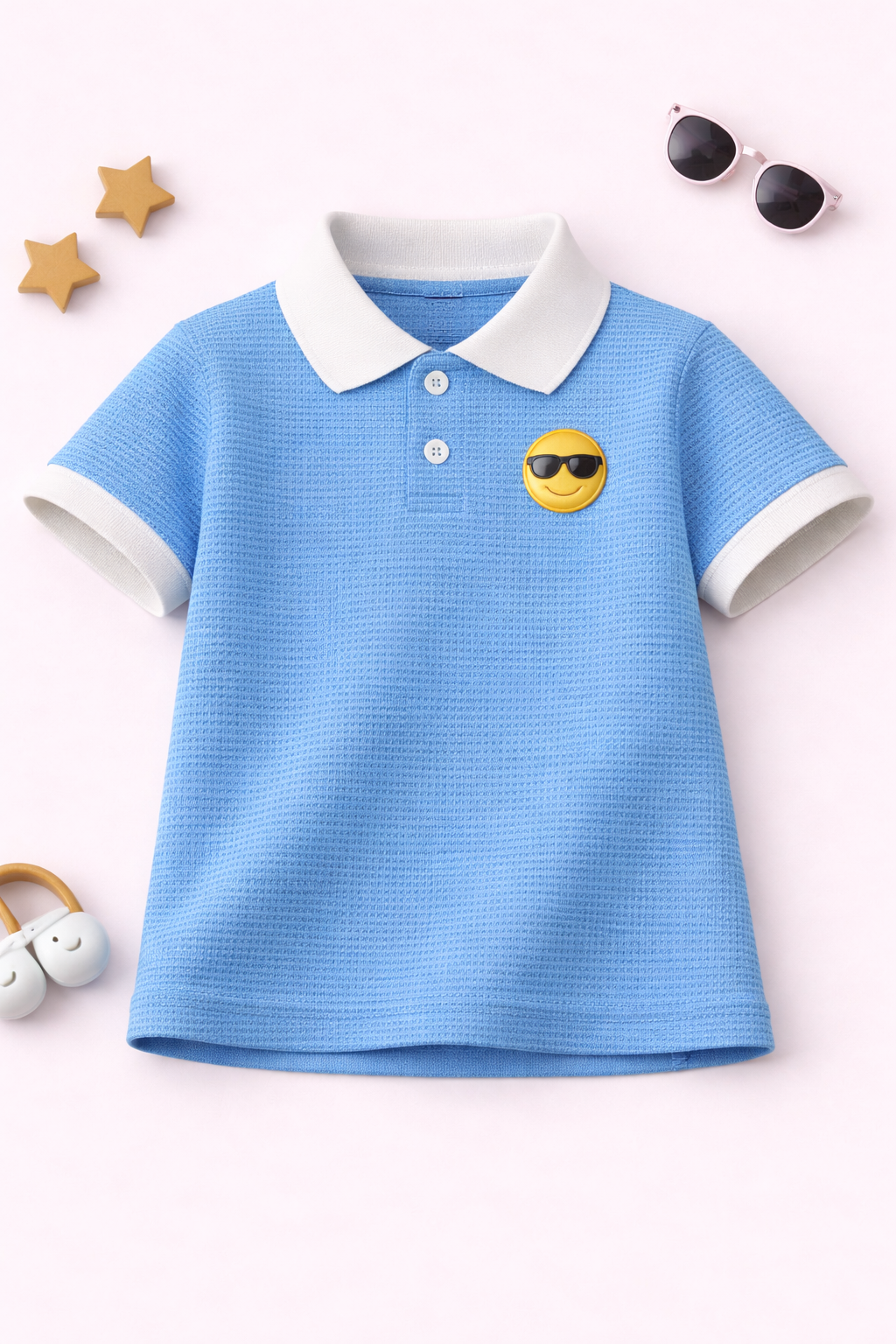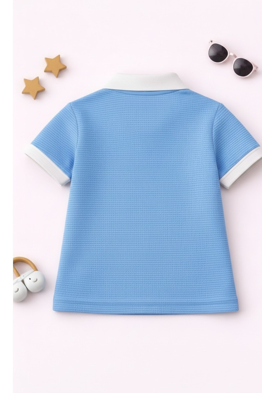 The waffle texture not only enhances the overall look but also improves airflow, making it a great choice for warm weather. The polo collar adds a smart and trendy vibe, making your child stand out effortlessly.